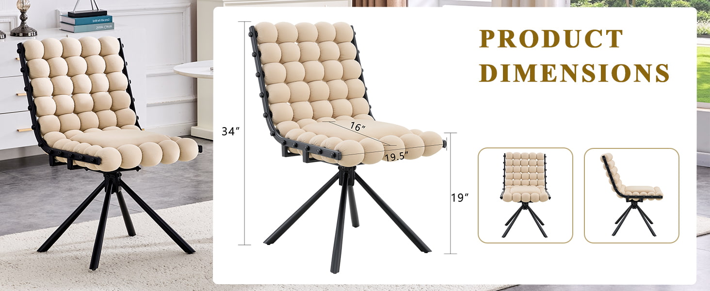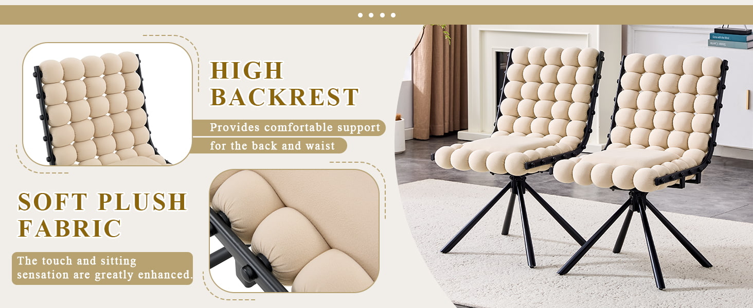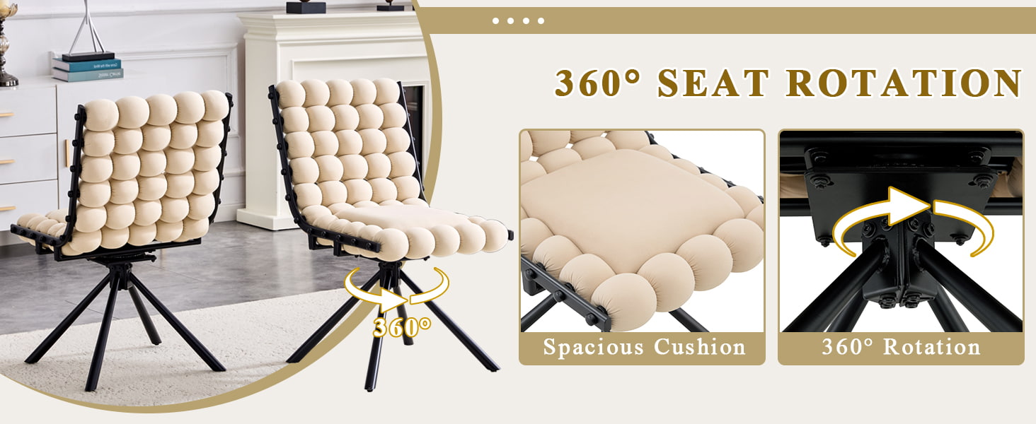 Cadeira de jantar giratória de veludo com encosto de almofada de bolha, cadeira estofada com pernas de metal (sem rodas)