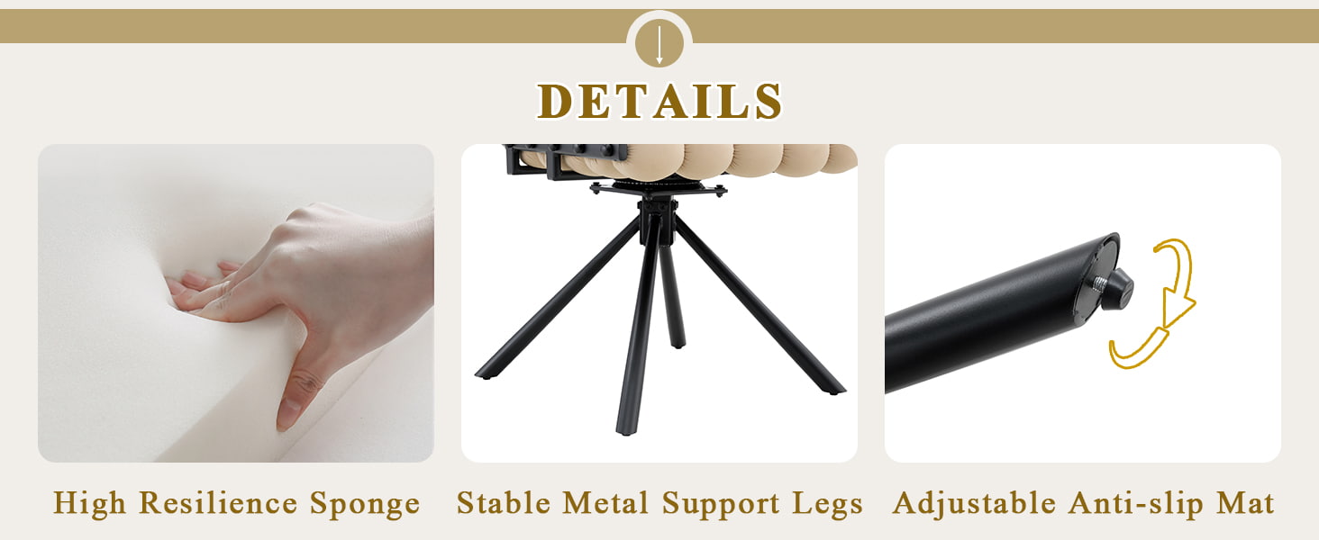 Esta cadeira de jantar giratória de veludo foi projetada para espaços de jantar modernos, interiores de estilo de vida e ambientes comerciais boutique. Apresentando um encosto escultural em forma de bolha e estofamento suave em veludo holandês, a cadeira combina um design atraente com o conforto do dia a dia. A função giratória de 360 graus permite movimentos flexíveis, enquanto as pernas de metal resistentes e a base sem rodas proporcionam estabilidade confiável para salas de jantar, salas de estar, áreas de maquiagem e assentos de cafés. Suas costas curvadas ergonômicas e amortecimento esponjoso de alta resiliência ajudam a distribuir a pressão corporal uniformemente, oferecendo suporte confortável durante a sessão prolongada.