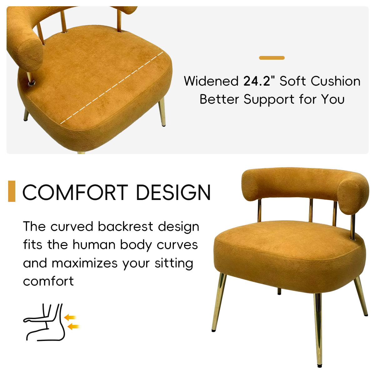 As pernas de metal dourado não apenas adicionam um toque moderno, mas também fornecem suporte sólido com uma capacidade de peso de 300 libras. Esteja você procurando uma cadeira de sotaque elegante de Boucle, um assento de vaidade no meio do século ou uma cadeira de leitura aconchegante, esta peça versátil se encaixa perfeitamente em qualquer ambiente. Resistente a arranhões, anti-pilão e fácil de limpar, é uma escolha prática para designers de interiores, revendedores de móveis e proprietários de imóveis conscientes do estilo.