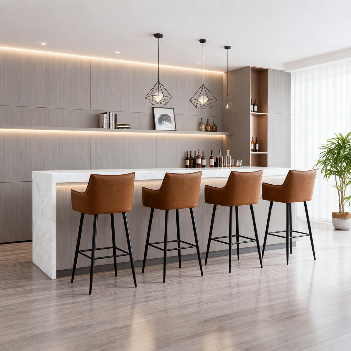 Sua silhueta minimalista e pernas pretas foscas complementam interiores residenciais e comerciais – desde ilhas de cozinha até bares sofisticados. Com uma base de metal resistente e almofadas antiderrapantes, cada banco oferece uma experiência de assento segura com capacidade de peso de 300 libras. Seja para casas modernas, restaurantes boutique ou balcões de bar, este banco traz sofisticação atemporal a todos os ambientes.