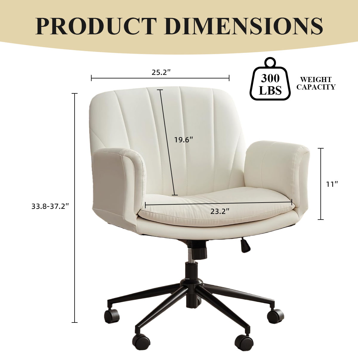 Cadeira giratória de couro PU ajustável Criss Cross com apoios de braços e rodas de 5 marchas —— Cadeira ergonômica de penteadeira/escritório/maquiagem (branco leitoso)